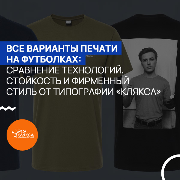 Типография «Клякса» — профессионалы в мире печати. Мы предлагаем не просто широкий выбор способов печати, но и экспертный подход: подскажем оптимальный вариант, реализуем креатив, обеспечим скорость и качество. От классической шелкографии до современных DTF и сублимации — ключ к долговечной, яркой и стильной футболке с вашим дизайном. Оформите заказ — и убедитесь: мы действительно «та самая типография, которую вы искали» в Калининграде!